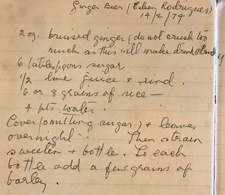 Ginger Beer (Maria Teresa Faria de Freitas from Eileen Rodrigues – 14-2-74) | |