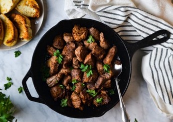 - Heat the oil in a skillet, add the pork cubes from the marinade, and cook until brown turning frequently.